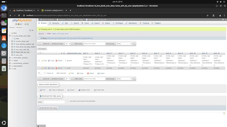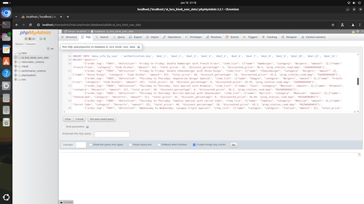 🍔 🚗 🛎️ 📶 Then, the web application saves the retrieved JSON objects of user-specific menus/deals to the associated MariaDB database table accordingly.