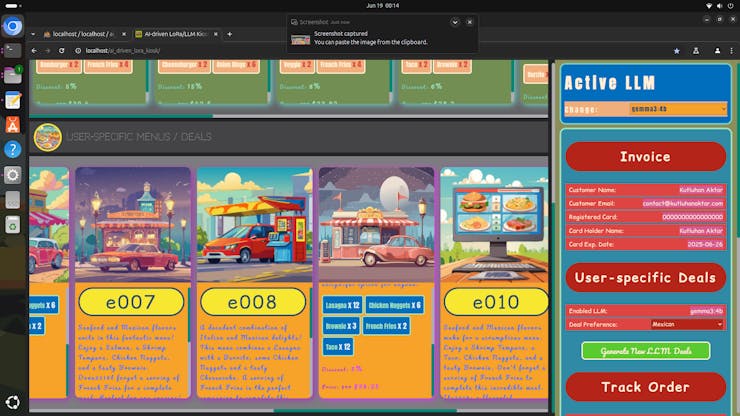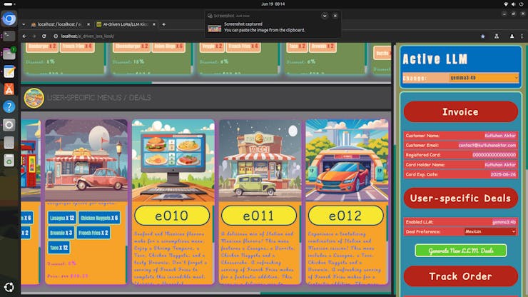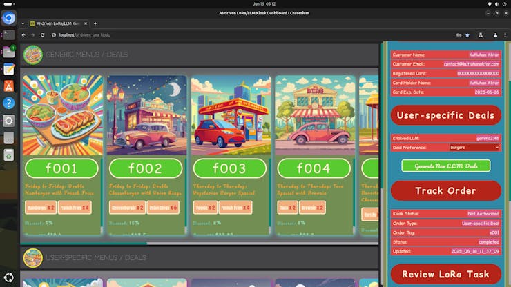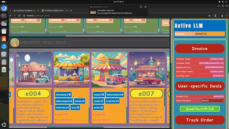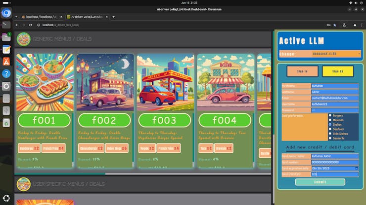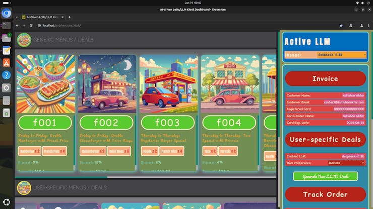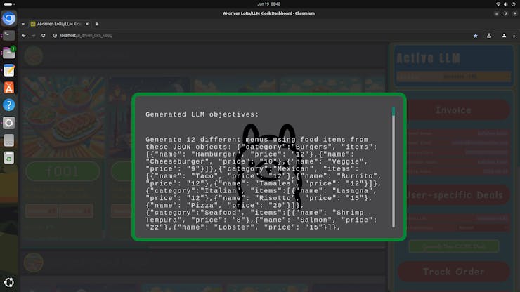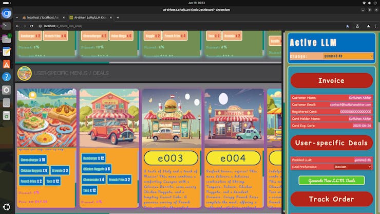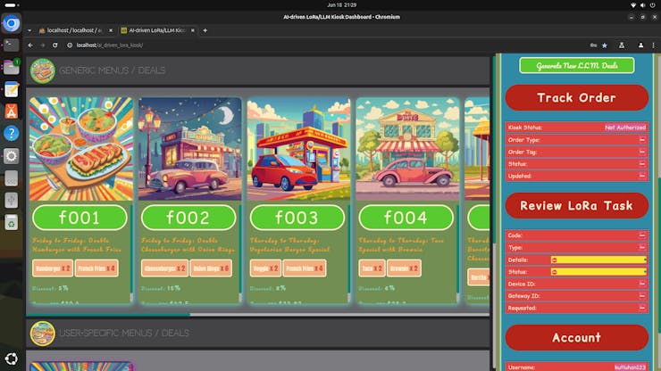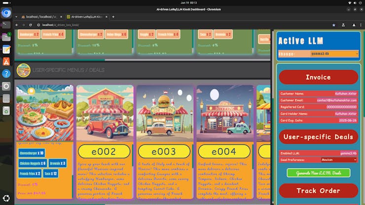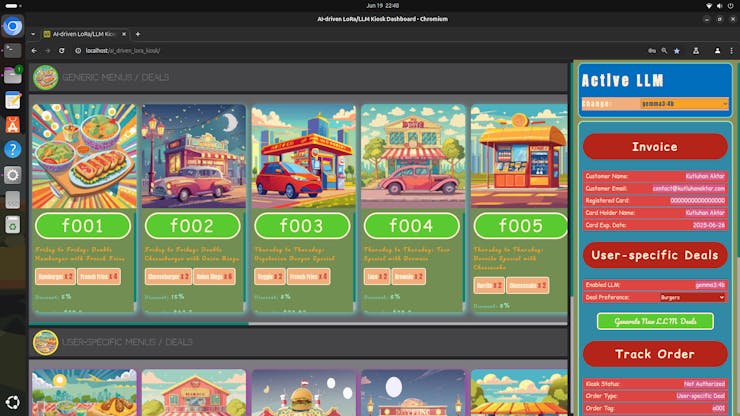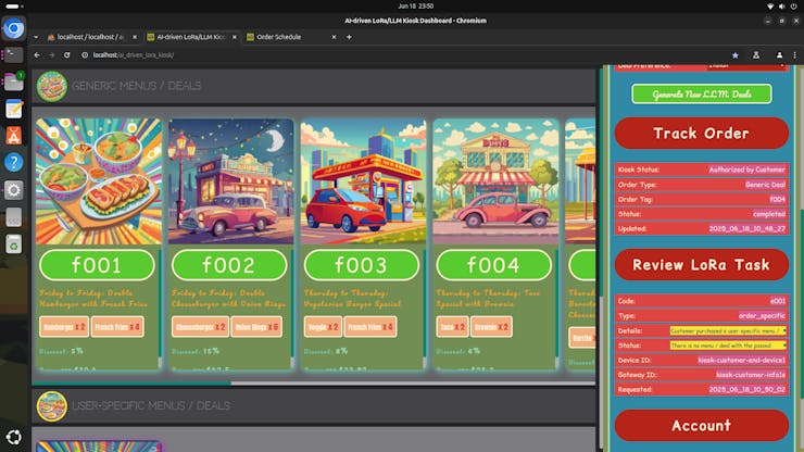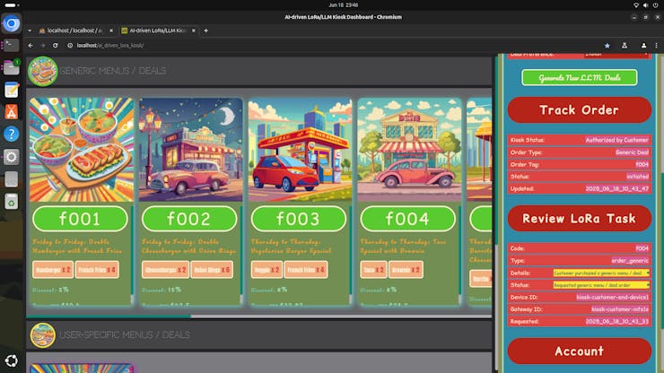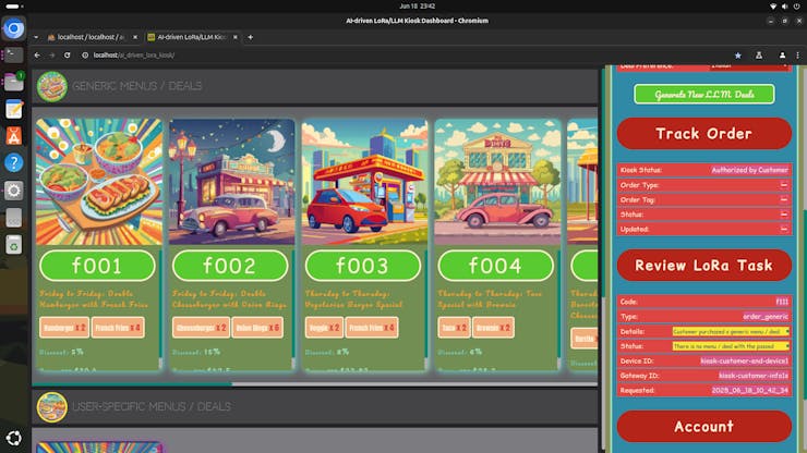 🍔 🚗 🛎️ 📶 Since the web dashboard updates itself automatically and dynamically, customers can access the generated user-specific menu/deal information as soon as they close the LLM interface.