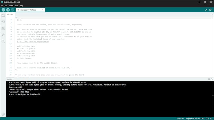#️⃣ If the RA-08H node board just shows a default COM port number (e.g., COM3) without any board information, upload a basic example such as Blink.