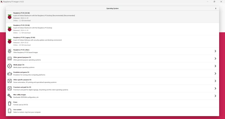 #️⃣ First, I installed the official Raspberry Pi 4 B-compatible operating system image on a microSD card to start developing with a fresh OS.