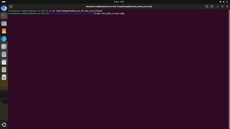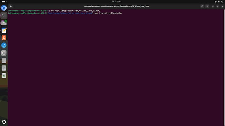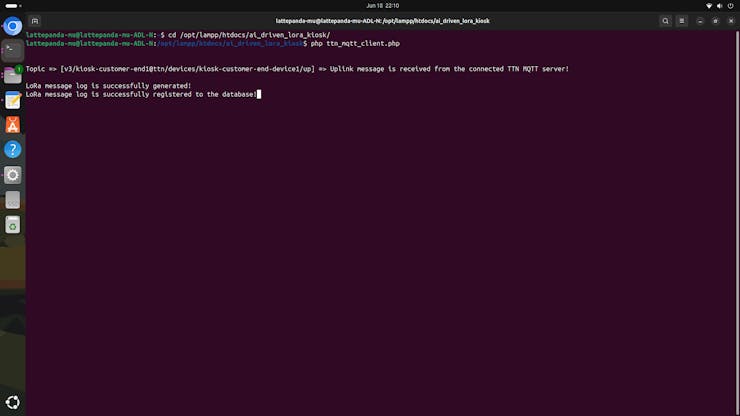 ✅ Installing the PHP-MQTT client on LattePanda Mu to enable the restaurant web application to obtain LoRa-transmitted data packets from The Things Network.
