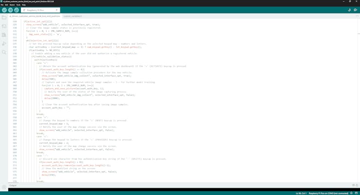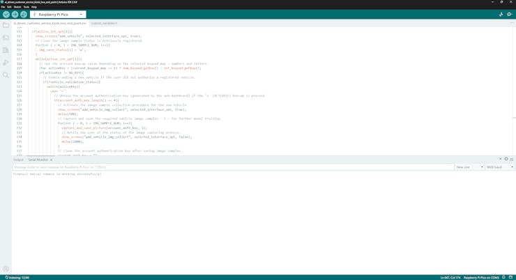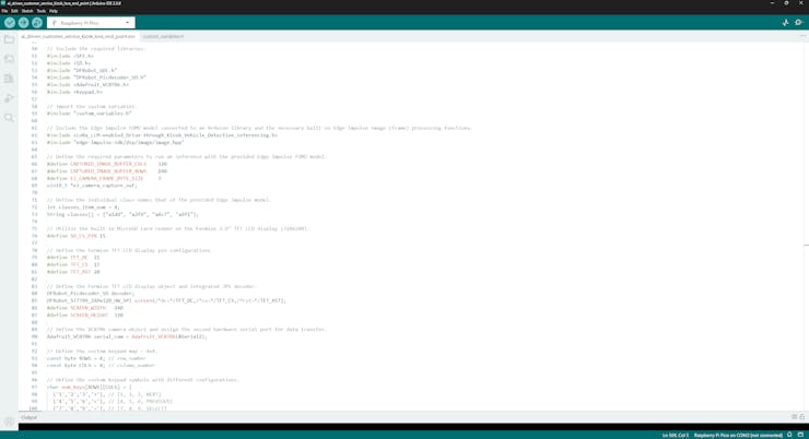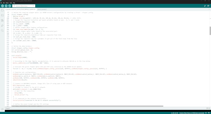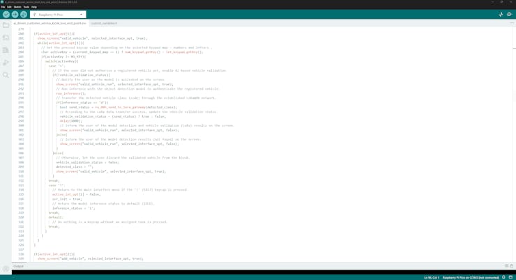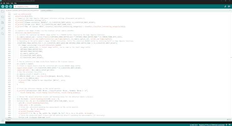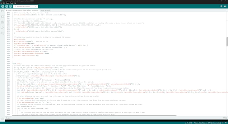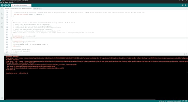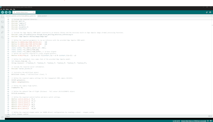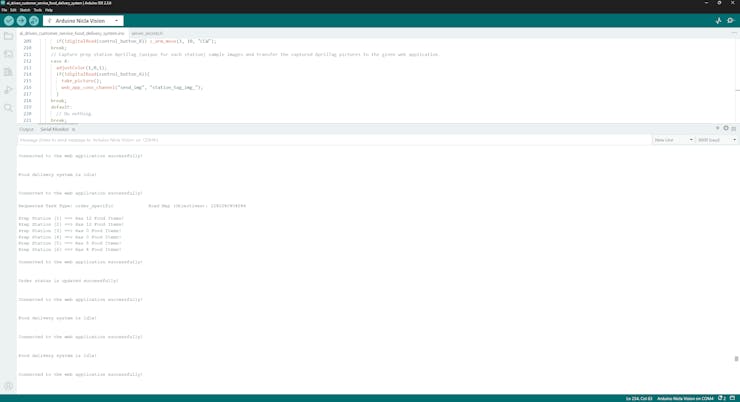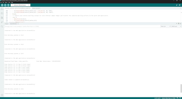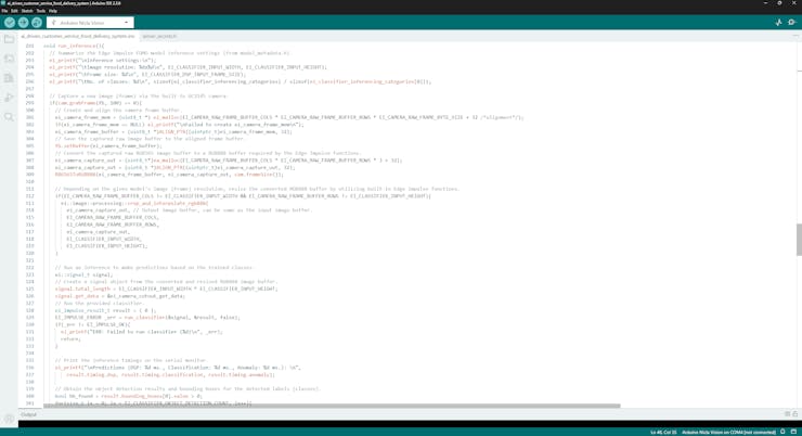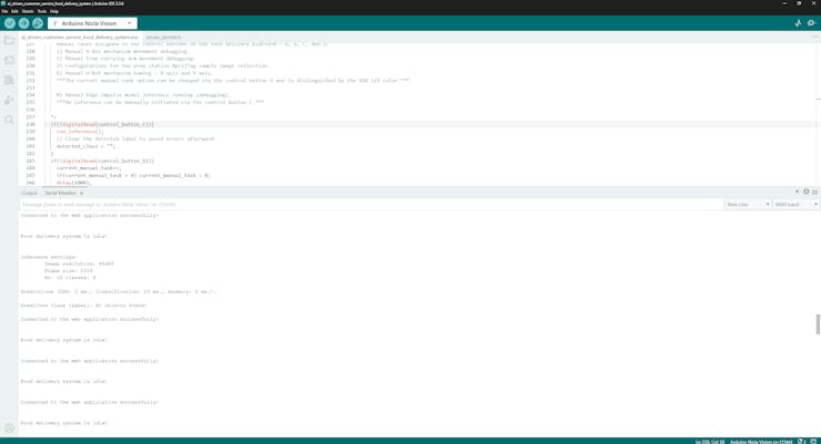 🍔 🚗 🛎️ 📶 As discussed earlier, for debugging, the food delivery system enables the user (restaurant worker) to run an inference with the provided FOMO object detection model manually by pressing the control button C.