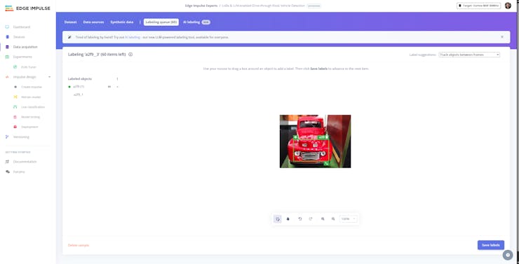 ✅ Building a FOMO object detection model with Edge Impulse for recognizing the registered customer vehicles.