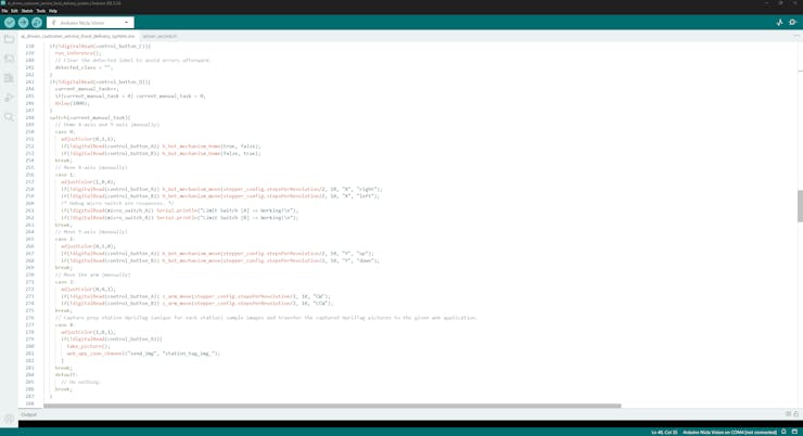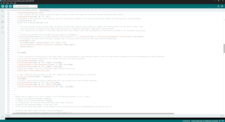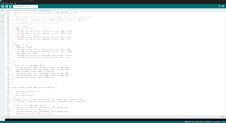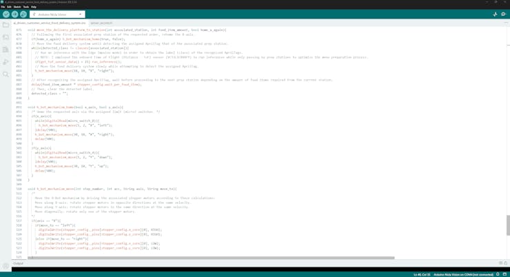 🍔 🚗 🛎️ 📶 Once the food delivery system receives the order information, it extracts the necessary food item list per food prep station from the obtained prep station road map and executes the X-axis and Y-axis homing sequences for the gantry head.