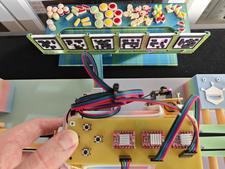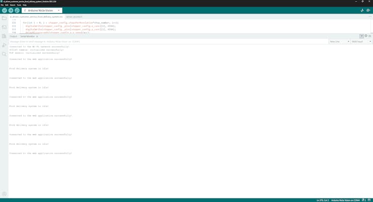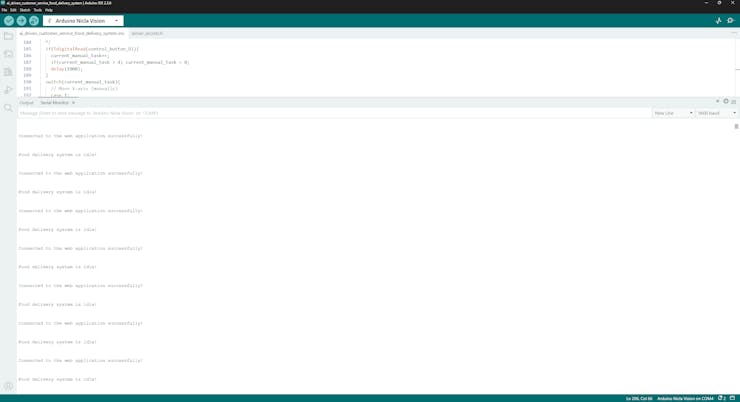 🍔 🚗 🛎️ 📶 After concluding the homing sequences successfully, the food delivery system moves the gantry head to the required position to initiate the food item collection process.