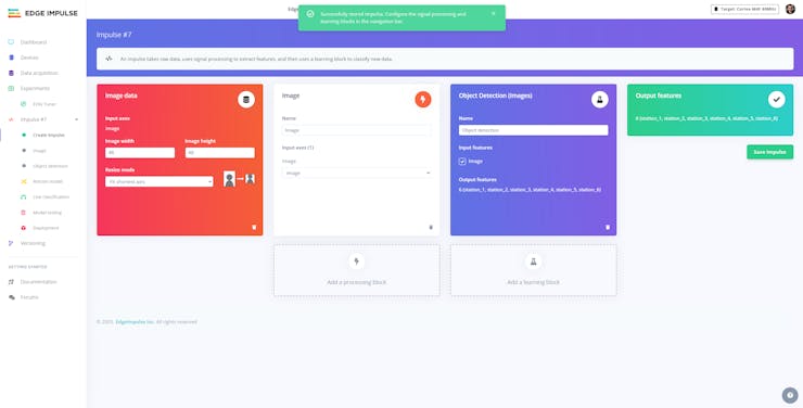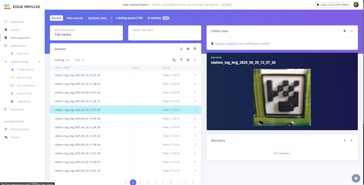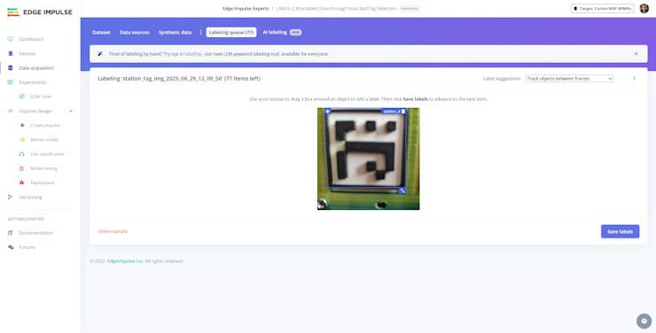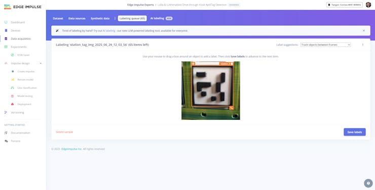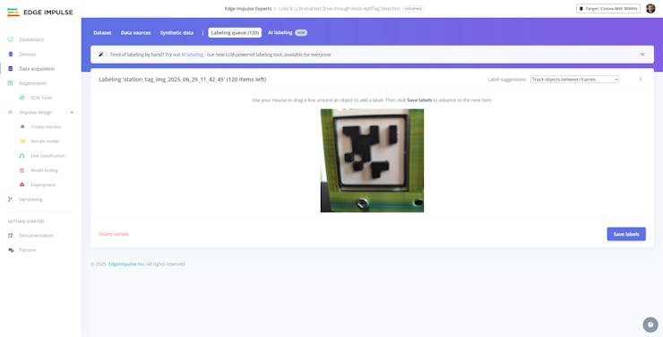 ✅ Building a FOMO object detection model with Edge Impulse for identifying individual food prep stations by their assigned AprilTag signs.