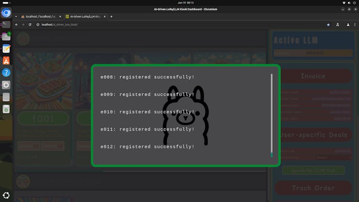 ✅ Enabling the kiosk customer endpoint to communicate with the restaurant web application via LoRaWAN.