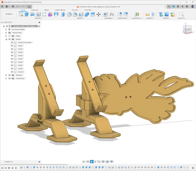 Since this is a multi-model AI-oriented project, I needed to construct two different data sets and train two separate machine learning models in order to build a capable device. First, I focused on constructing a valid audio data set for detecting anomalous sound originating from cooling fans. Since XIAO ESP32C6 is a compact and high-performance IoT development board providing 512KB SRAM and 4 MB Flash, I decided to utilize XIAO ESP32C6 to collect audio samples and run my neural network model for anomalous sound detection. To generate fast and accurate audio samples (buffers), I decided to use a Fermion I2S MEMS microphone. Also, I connected an SSD1306 OLED display and four control buttons to program a feature-rich on-device user interface. After collecting an audio sample, XIAO ESP32C6 transfers it to the web dashboard for data collection. As mentioned earlier, I designed my custom CNC router based on Arduino Nano due to its operating voltage. To provide seamless device operations, XIAO ESP32C6 communicates with Arduino Nano to move the thermal camera container head.