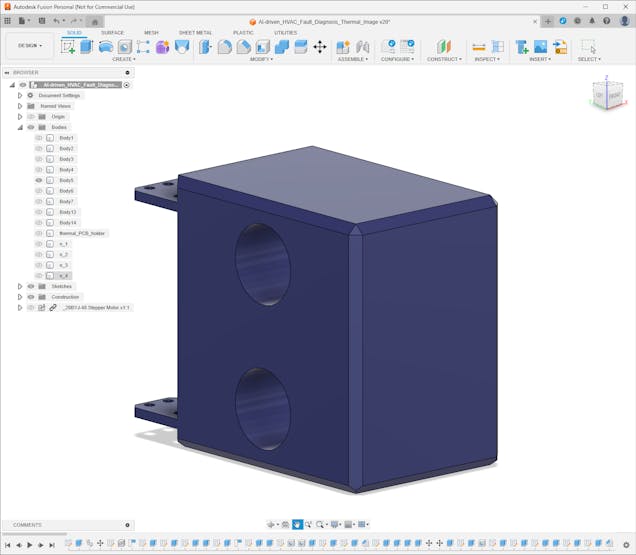 As I started to work on developing my AI-powered device features, I realized that no available open-source data sets were fulfilling the purpose of multi-model HVAC malfunction diagnosis. Thus, since I did not have the resources to collect data from an industrial-level HVAC system, I decided to build a simplified HVAC system simulating the required component failures for data collection and in-field model testing. I got heavily inspired by PC (computer) water cooling systems while designing my simplified HVAC system. Similar to a closed-loop PC water cooling design, I built my system by utilizing a water pump, plastic tubings, an aluminum radiator, and aluminum blocks. As for the coolant reservoir, I decided to design a custom one and print the parts with my 3D printer. Nonetheless, since I decided to produce a precise thermal image by scanning cooling components, I still needed an additional mechanism to move a thermal camera on the targeted components — aluminum blocks. Thus, I decided to design a fully 3D-printable CNC router with the thermal camera container head to position the thermal camera, providing an automatic homing sequence. My custom CNC router is controlled by Arduino Nano and consists of a 28BYJ-48 stepper motor, GT2 pulleys, a timing belt, and gear clamps. While producing thermal images and running the visual anomaly detection model, I simply added an aquarium heater to the closed-water loop in order to instantiate aluminum block cooling malfunctions.