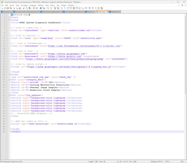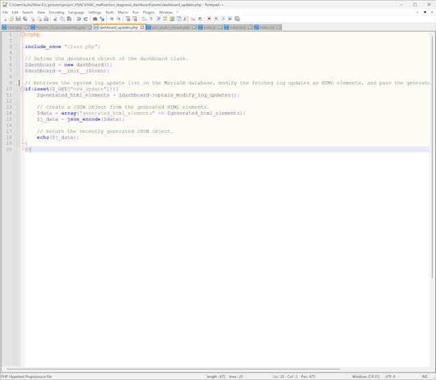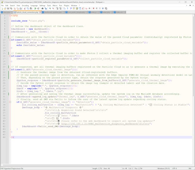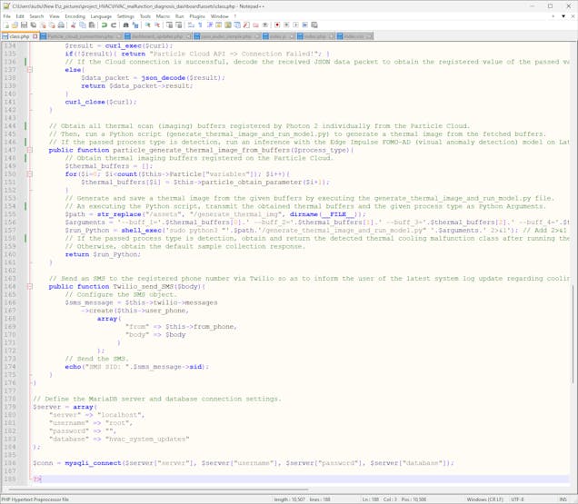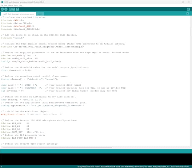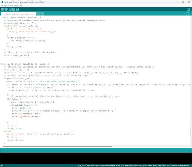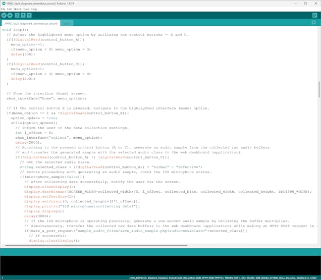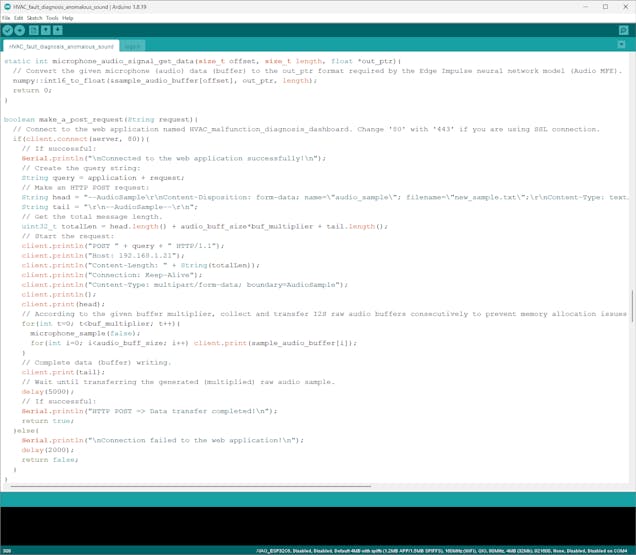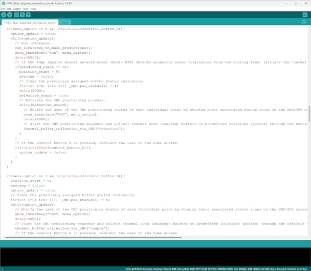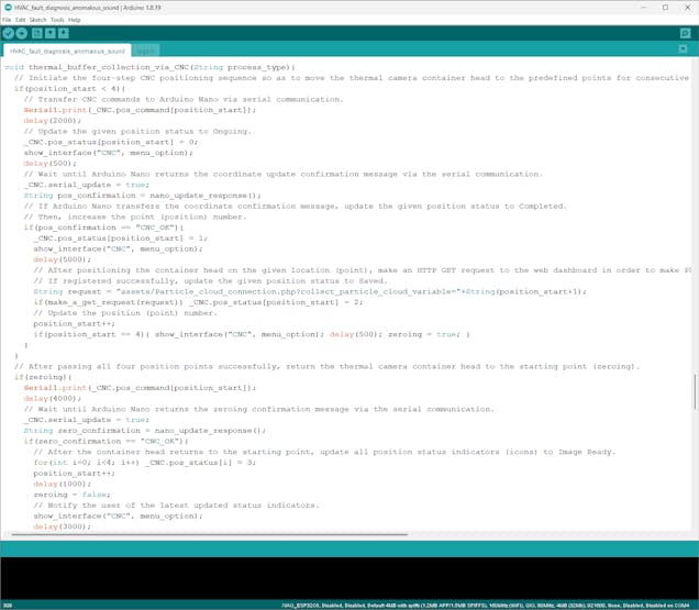Since this HVAC malfunction detection device performs various interconnected features between different development boards and the web application (dashboard), I needed to compartmentalize consecutive processes and describe functions under the same code file separately to provide comprehensive step-by-step instructions.