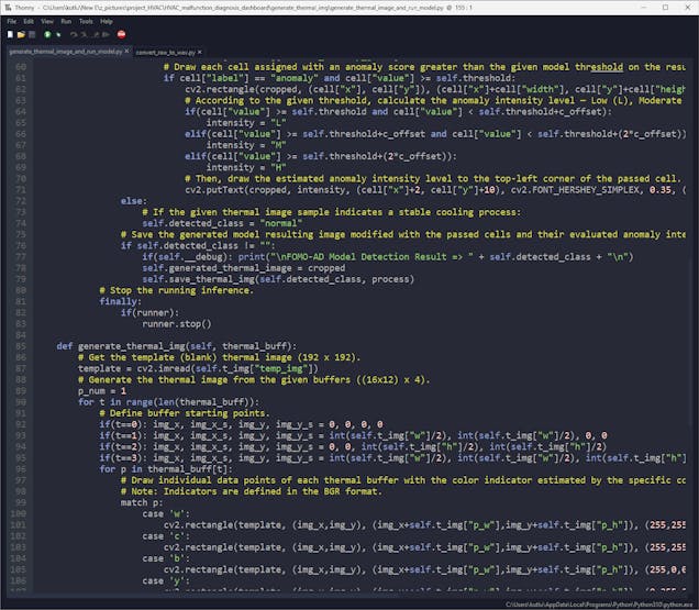 Since I described all of the web application features earlier, including the Python script handling thermal image generation, running the visual anomaly detection model, and modifying the resulting image based on the visual anomaly grid with estimated cell anomaly intensity levels, please refer to Step 5.2 to inspect code snippets.
