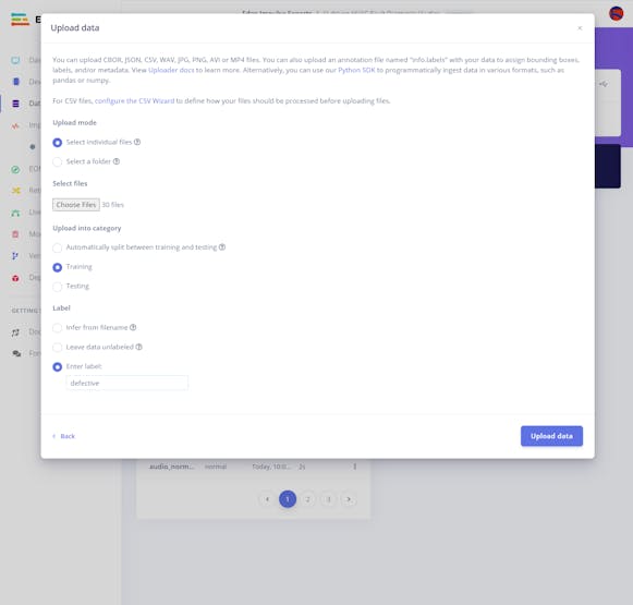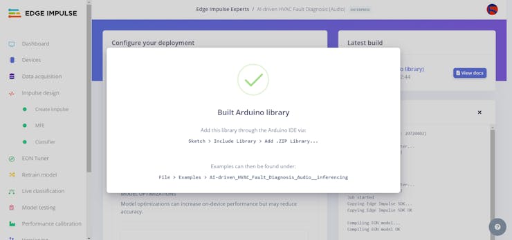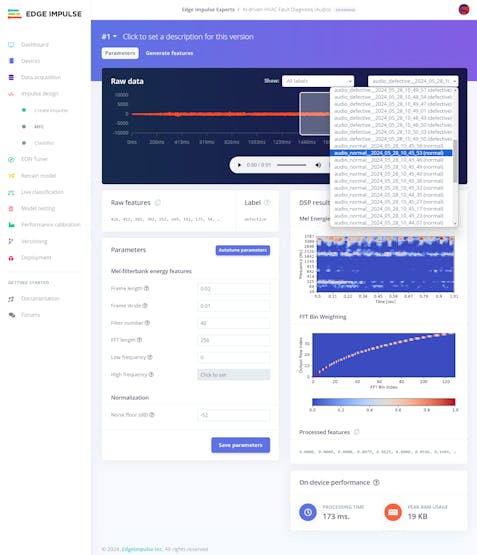 - Edge Impulse machine learning models — Audio MFE and FOMO-AD