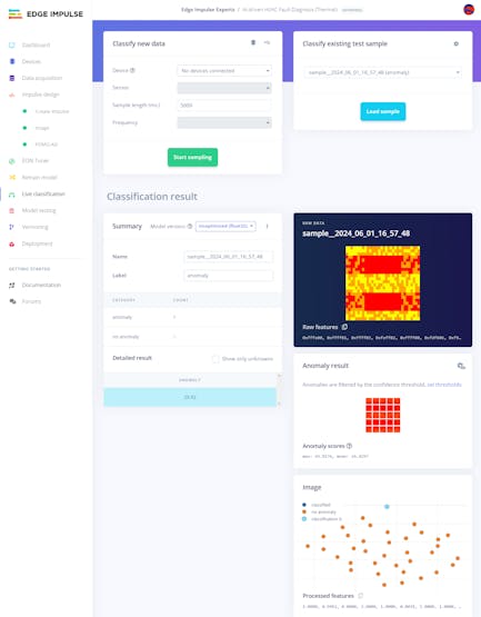 ⚠️🔊♨️🖼️ However, instead of saving the produced image as a sample directly, the web application runs an inference with the Edge Impulse FOMO-AD visual anomaly detection model to diagnose consecutive thermal cooling malfunctions of HVAC system components after anomalous sound detection.