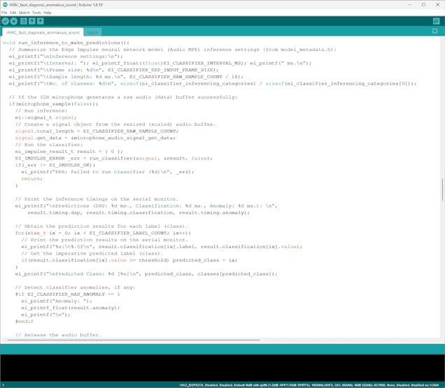 ⚠️🔊♨️🖼️ XIAO ESP32C6 generates a raw audio buffer via the I2S microphone and runs an inference with the Edge Impulse Audio MFE neural network model every five seconds to identify anomalous sound originating from the HVAC system cooling fans.