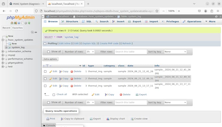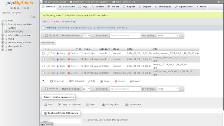 ⚠️🔊♨️🖼️ After generating and saving the model resulting image, the web application updates the system log on the MariaDB database accordingly.