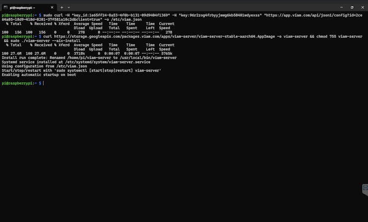 Now the viam-server is installed on your Raspberry Pi and is configured to autostart on reboot. Or you can start it using this command.