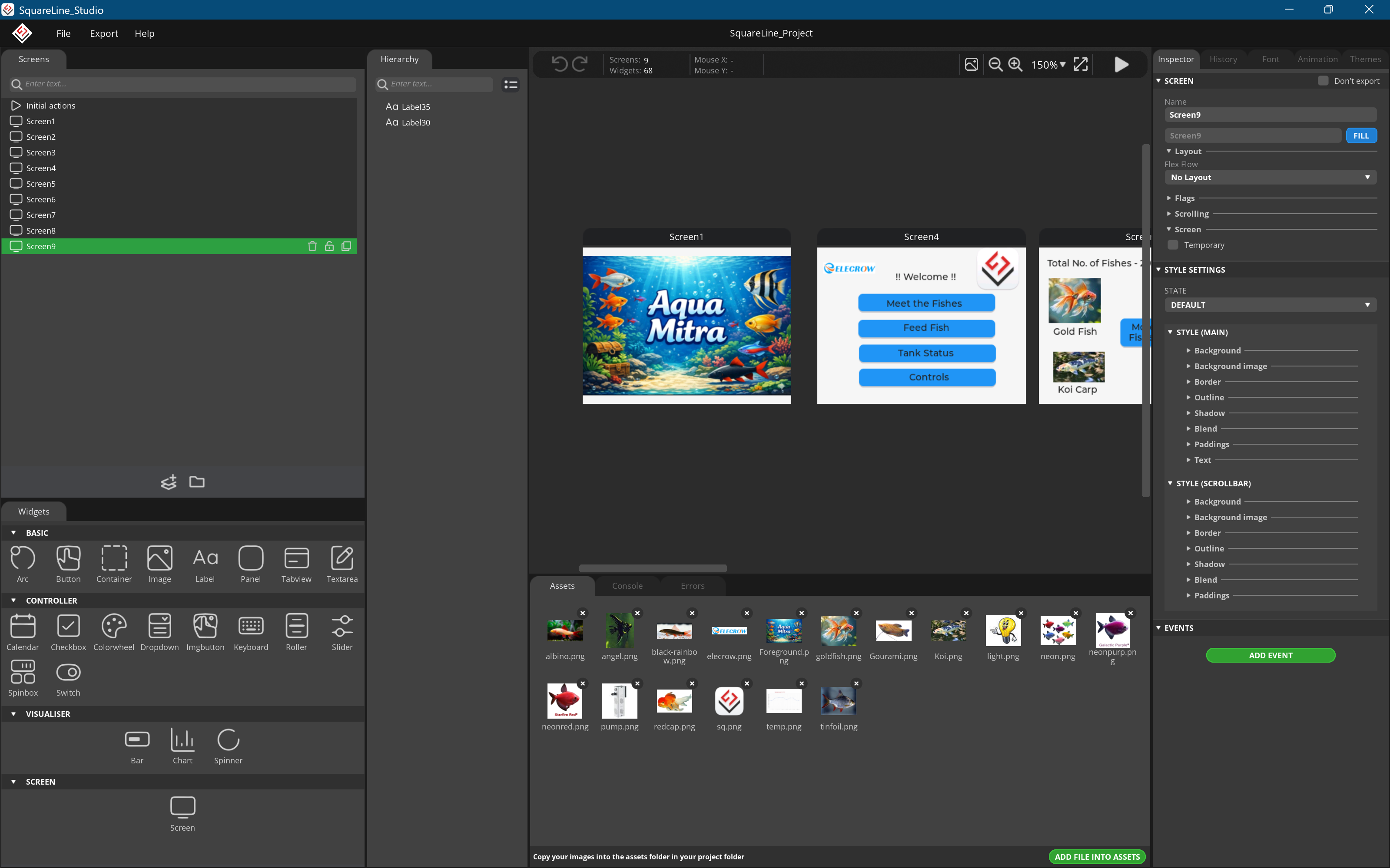 Interactive UI designed using SquareLine Studio