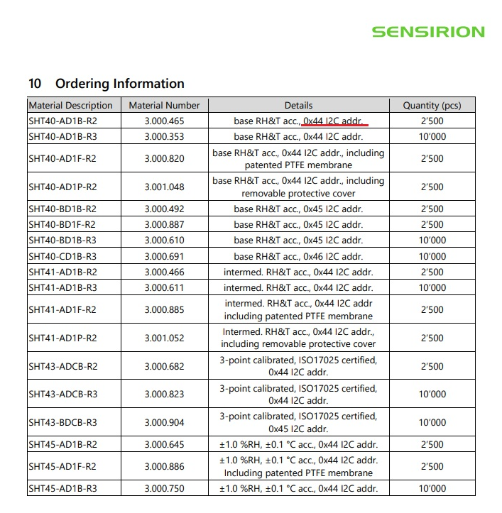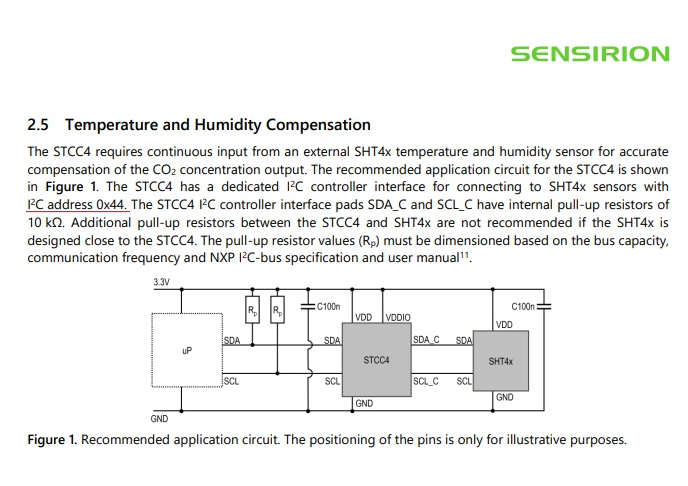 When sourcing parts, remember to order the correct SHT40 needed for STCC4 temperature and humidity compensation. This part connects directly to the STCC4, must be as close as possible and must have an i2c address of 0x44. A sensor with a different address will be ignored.
