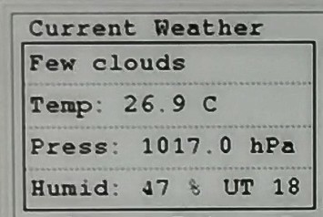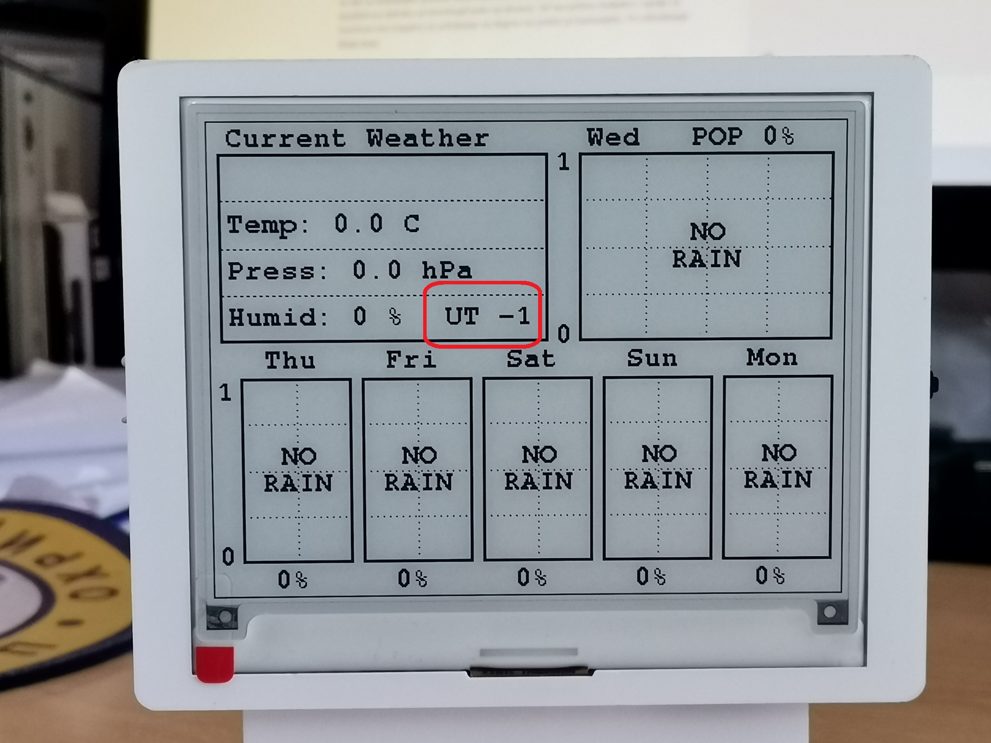 If for some reason the data from openweathermaps is not downloaded, all data is 0.0 and "-1" appears on the Current Weather screen in UT, which is a sign of an unsuccessful download. The data will be downloaded in next 15 minutes, or immediately, if we press the reset button or the off/on switch.