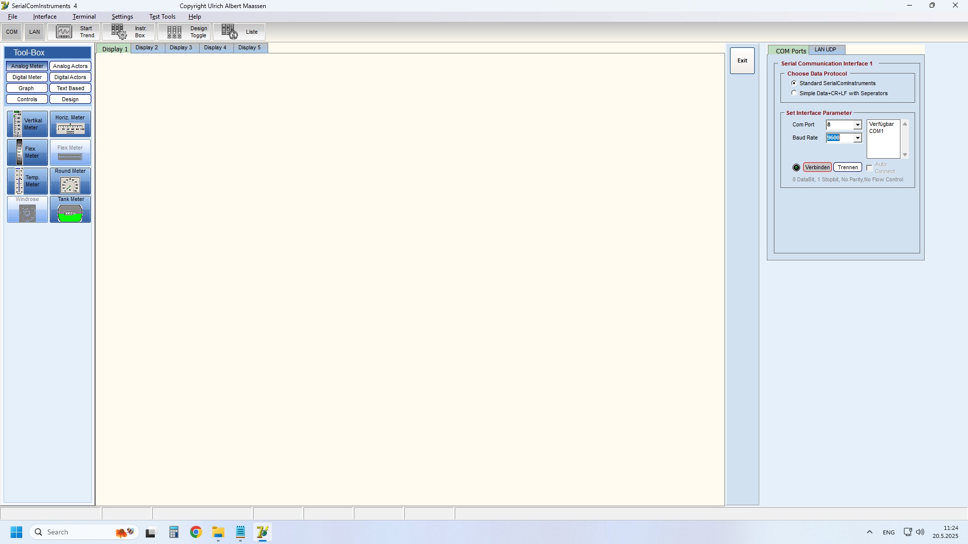 And as I mentioned at the beginning, for visual presentation of the results I use a PC with the wonderful Windows application "Serrialcominstruments" installed, which is the work of Ulrich Albert Maassen and you can download the latest version 4.1 on the given page (https://www.mikrocontroller.net/topic/310940?page=6), and use it freely but only for personal needs. In fact, this time I will only briefly explain how to set up the program specifically for this case. I am trying to get in touch with the author, and if I get his permission, I plan to make a video with more detailed instructions on setting up and using this really useful tool.