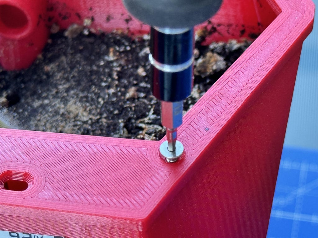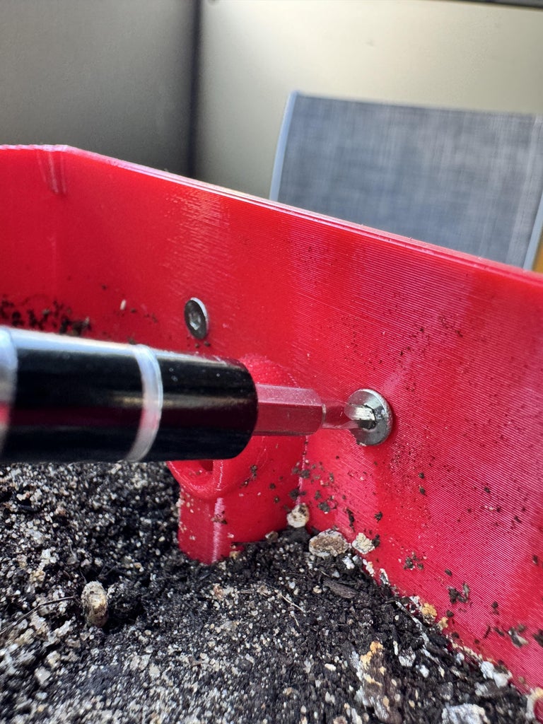 Once the pot is printed, begin by assembling the hanging arm using two 10x3M screws. I selected flat-head screws to ensure a smooth transition between the screws and the plastic surface.