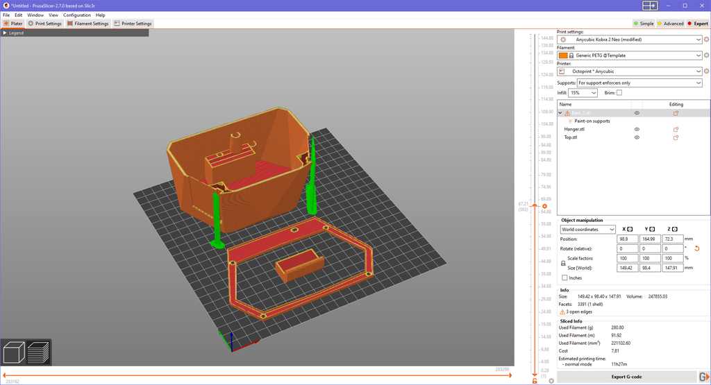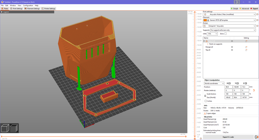 To print the e-Pot Prisma, use PETG filament with your 3D printer. I opted for PETG because the pot is intended for outdoor use, where it needs to withstand a wide range of temperatures and weather conditions. If you plan to keep it indoors, PLA is also a suitable alternative.