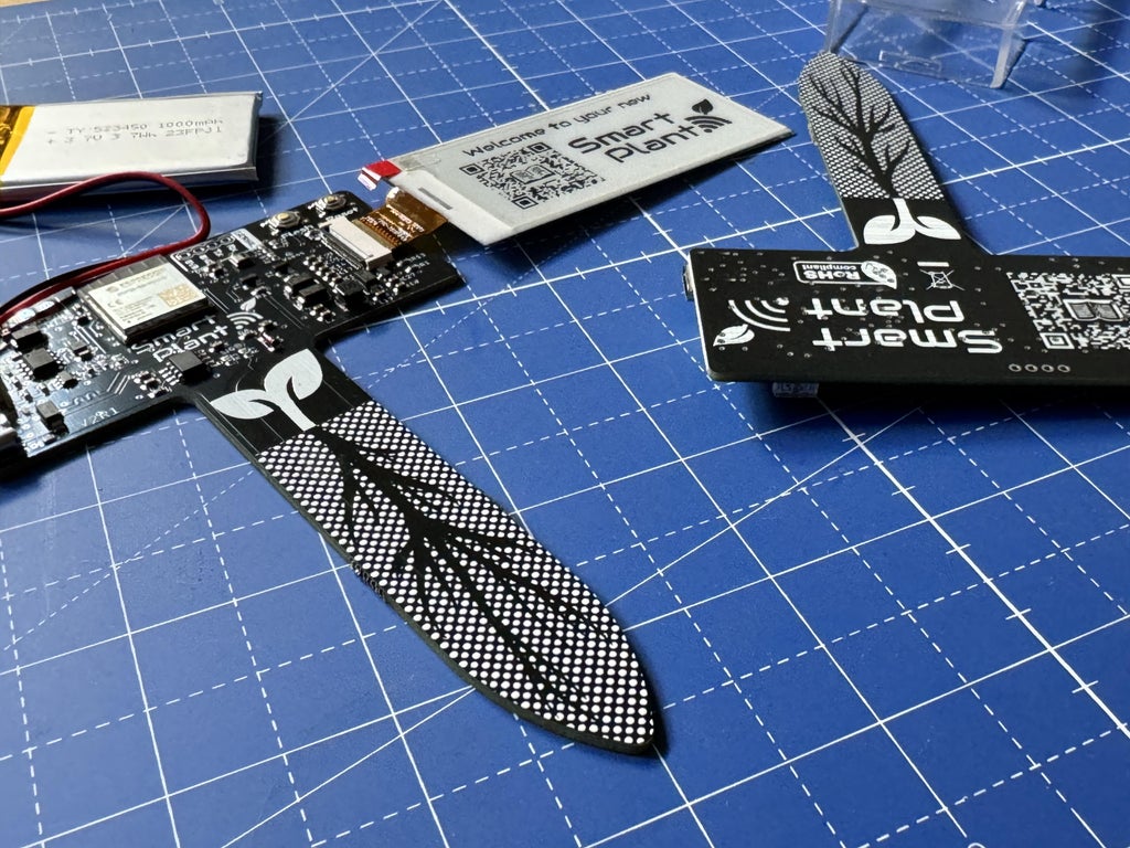 The Smart Plant is an electronic board designed to help gardeners monitor the health of their plants. With its advanced sensor suite, the Smart Plant can measure soil moisture, ambient light, air temperature and air relative humidity. In addition to its IoT capabilities, Smart Plant features a 2.9” e-paper display, allowing you to read your plant data at a glance.