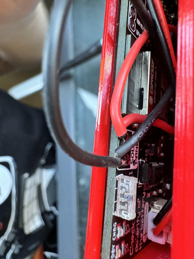 Before fully inserting the Smart Plant into the pot, solder the solar panel wires to the corresponding pads on the board, ensuring the polarity is correct by matching the wire colors.