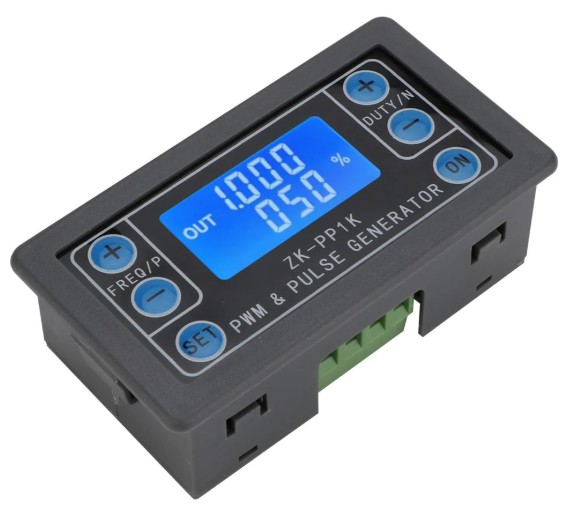 For the price of a few dollars we get a pulse generator with adjustable frequencies from 1Hz to 150kHz, and a duty cycle from 1 to 99%. It even has a small LCD display on which the selected values are displayed. You can notice that I use this module in a number of my previous projects. It can be powered by a voltage from 3 to 30V and the amplitude of the output signal is equal to the supply voltage.