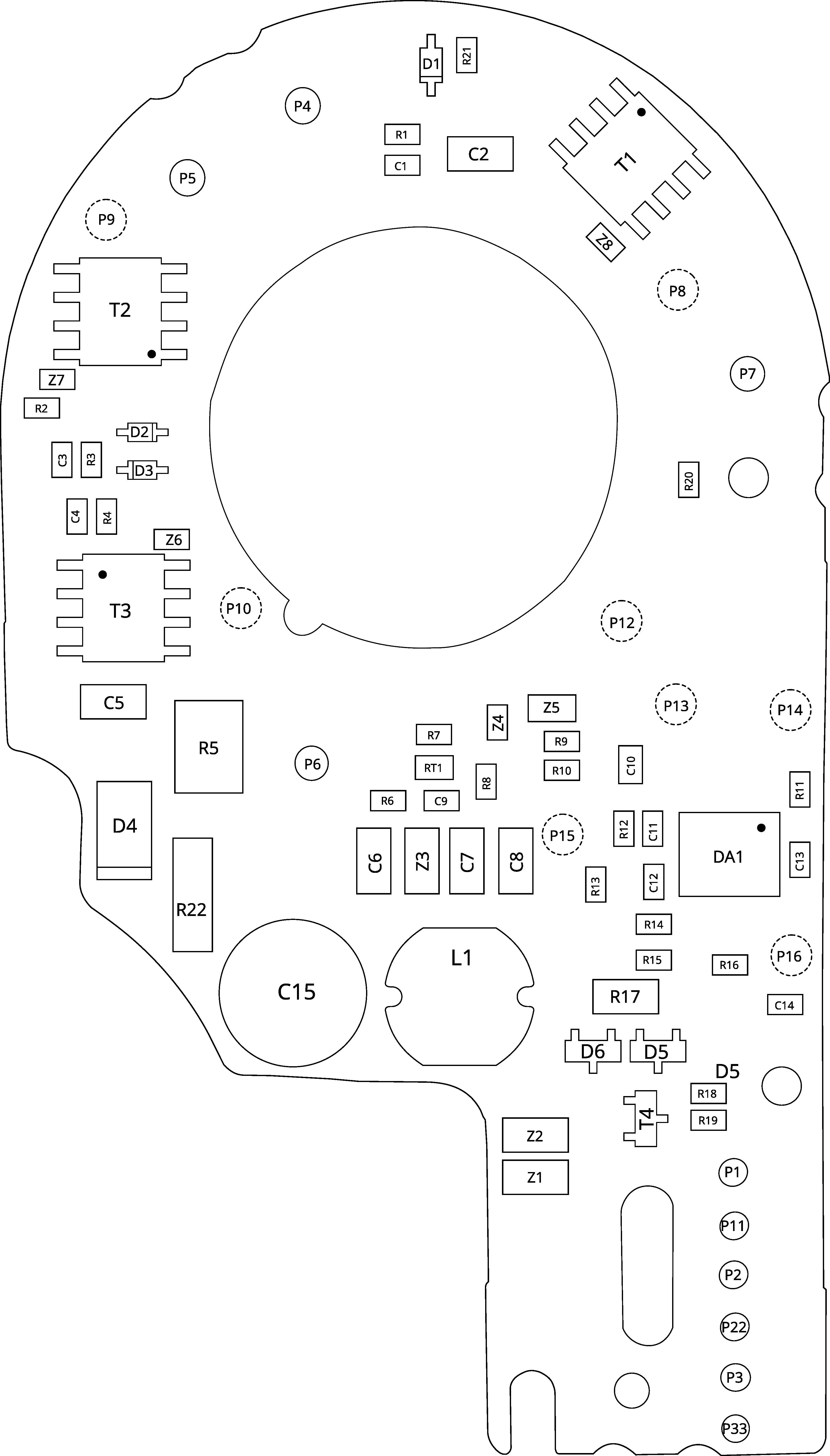 Layer 1 - TOP , with components and with the component designations.