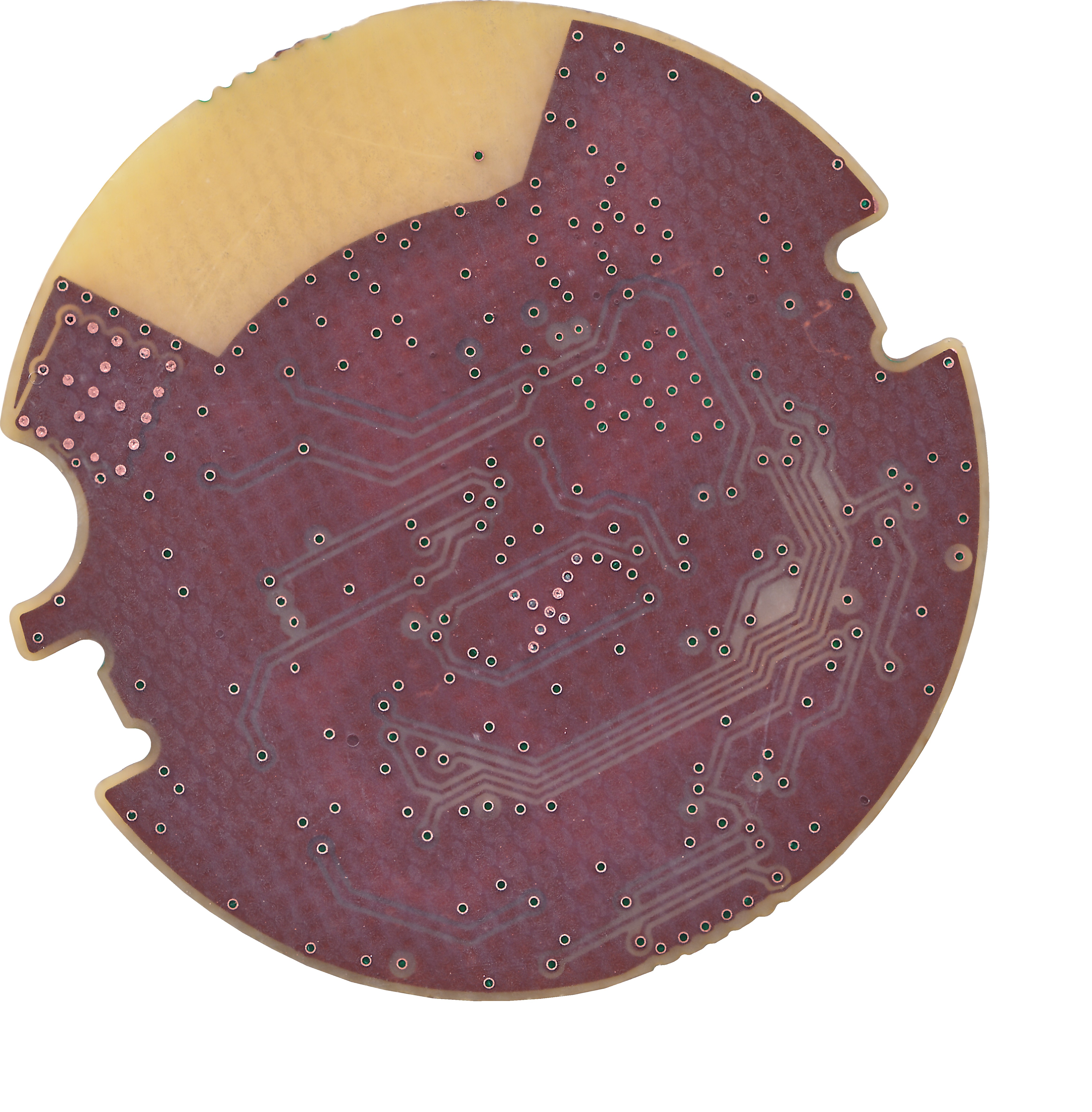The glass textolite between the BOT and inner layer 2 has been completely removed.