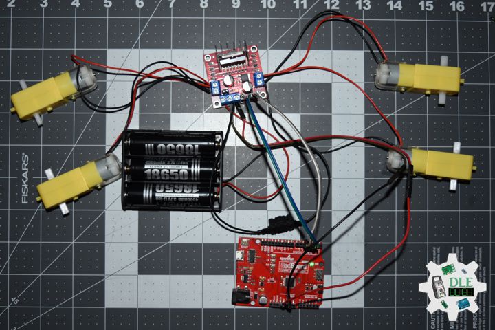 4WD Robot Car uses SparkFun RedBoard Qwiic as the main control board and is combined with L298N motor drive board, forming a powerful intelligent mobile device. As for L298N motor drive board, since it provides stable power output and flexible steering control, it is responsible for driving wheels.