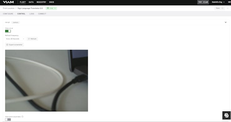 The camera is working perfectly. The below image shows the live view from the camera that is accessed in the control tab.