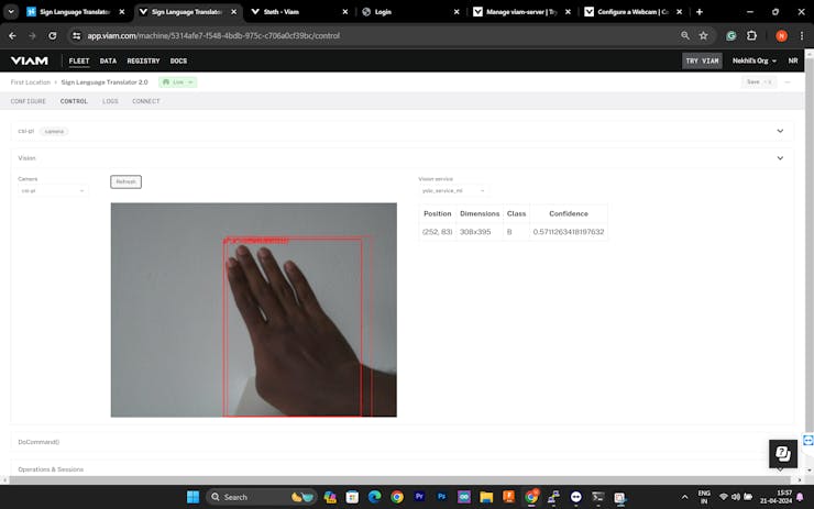 It's time to test the vision service. Here is the output shown on the control tab when the letter b is shown to the camera. It is working perfectly.