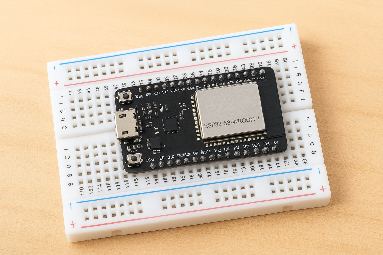 Place the ESP32-S3-WROOM-1 module on your breadboard or PCB at the designated position. Ensure the antenna area is unobstructed. Check the orientation of the pins to avoid damage during soldering.