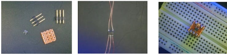 So first I made a simple breakout for the LTC4054 IC using a common PCB. For that first I cut a small piece of common PCB and inserted male pins into it (refer to images). Then I soldered single-stranded copper wire to every pin of the IC and connected those wires to the header pins.