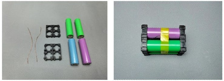 I connected the batteries in parallel. I used old 3.7v li-ion batteries, each of them having a capacity of 2500mah so the total capacity of 10000mah.