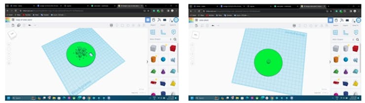 To give a proper finish and look I designed a a base for each solar panel. This base will act as support and also I added a holder to hold the aluminium wire. I designed it using tinkercad and I printed it using my Ender 3v2 printer. I used green colour PLA with 20% infill for printing, which is more resembles a plant. Also, I designed and printed a base for holding all the stems together. Download the.stl files from here
