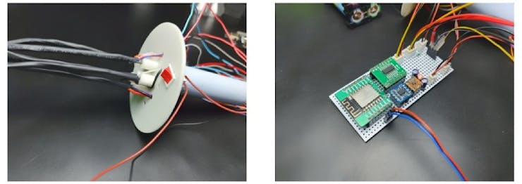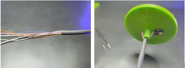 In the first step, I placed the solar panels on the 3D-printed base and inserted the wires through the hole.