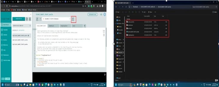 First, go to the sketch tab of the Arduino IoT cloud, there we can see the automatically generated Arduino code. The code generated by the Arduino IoT cloud is not complete it gives the structure of the entire Arduino program. Either we edit the code in the iot cloud, or we can use the offline IDE. I am using an offline IDE for that I downloaded the code from the IoT cloud. For that Click on the three dots and select the download sketch option. Now you will get a.zip file, unzip the file and open the Arduino code for editing. It contains 2 more header files called Arduino secrets.h and thingproperties. h.