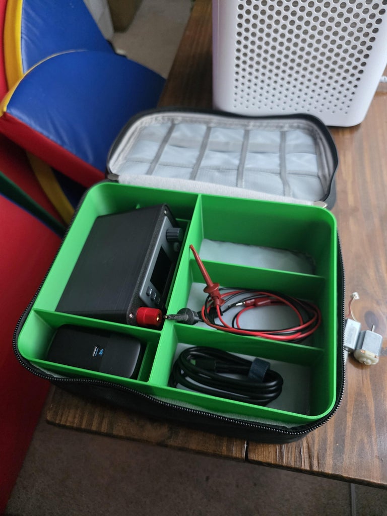 I built a semi-customized case to hold everything. I didn't like the dividers that came with the case, so I designed a divider insert (see the 3d print).