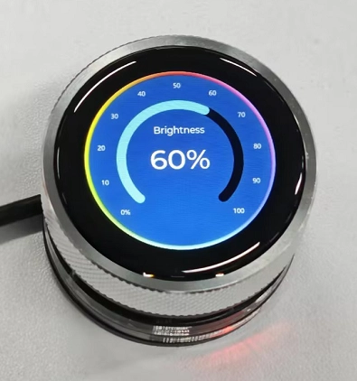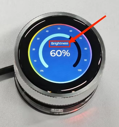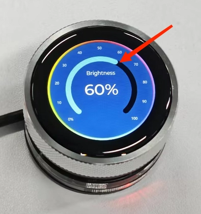 If you have added the provided code features, the screen will display the current brightness value, and rotating the knob will update the slider and value in real-time.