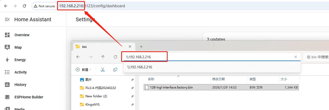 Then, you can open a file explorer on your computer and enter + your Home Assistant IP address.