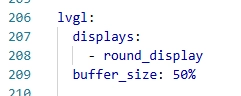 First, associate the pre-configured round_display and set LVGL cache to 50% of screen memory to ensure smooth rendering.