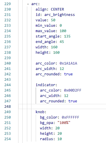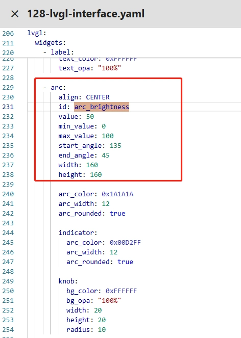 Next, let's explain the key parts of this code, specifically how to write code on the ESPHome platform to link the LVGL interface with the rotary effect, allowing the slider to adjust as you turn the knob.