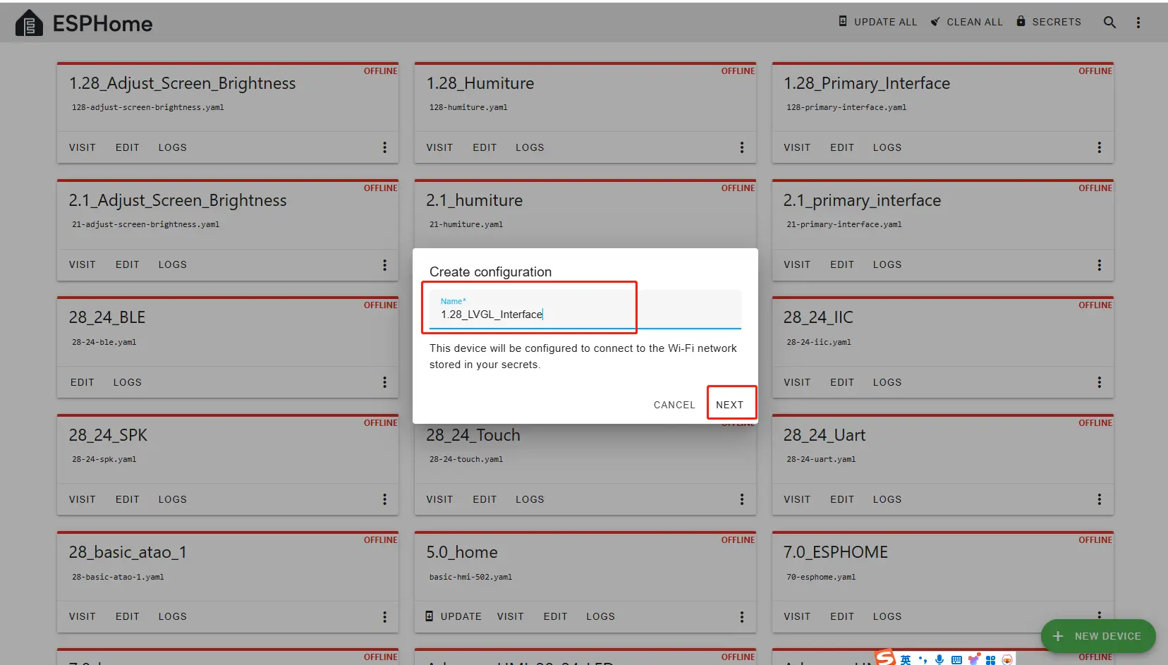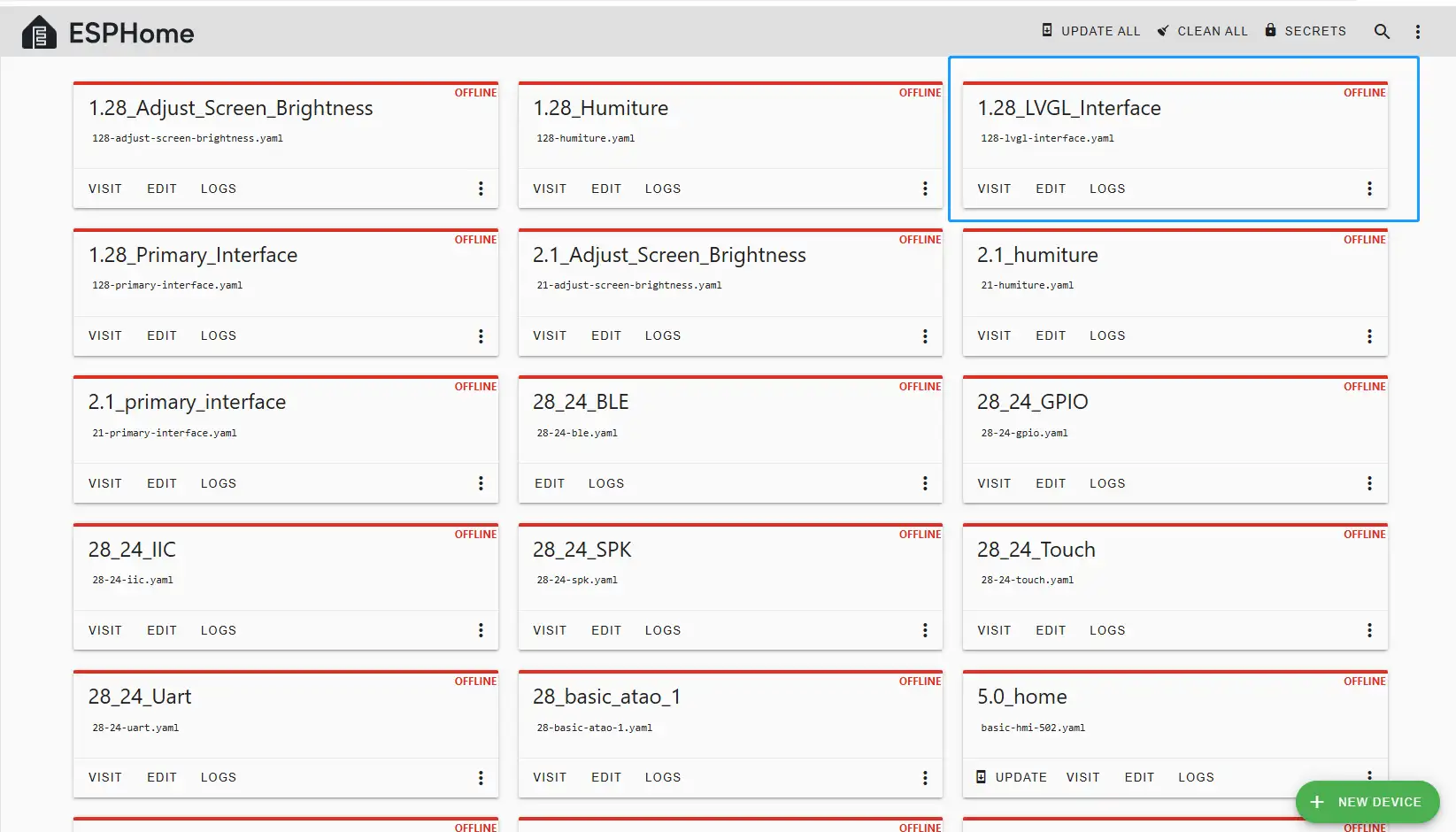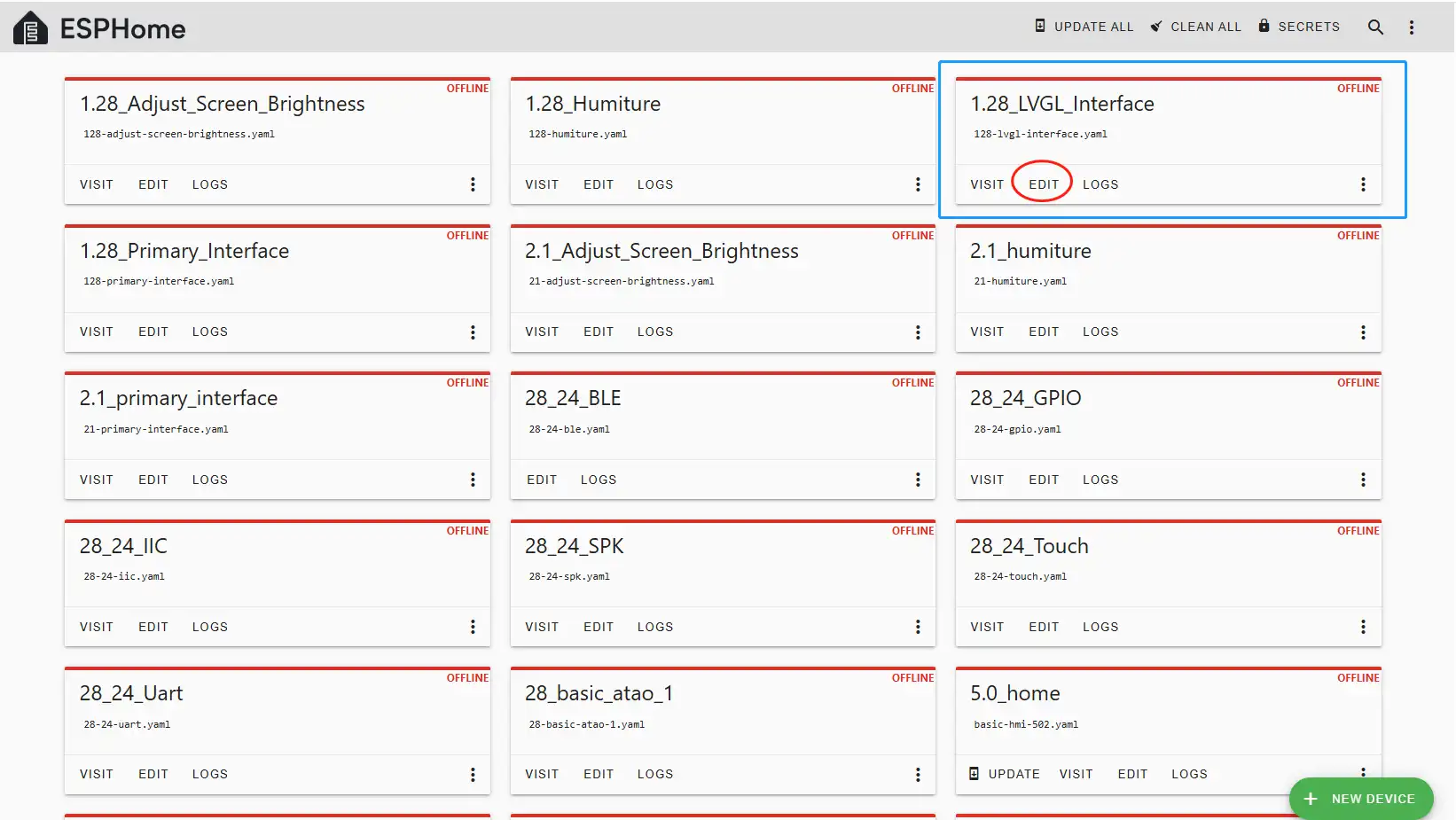 Then, return to the main interface, find the 1.28_LVGL_Interface you just created, click "EDIT", and enter the code editor.
