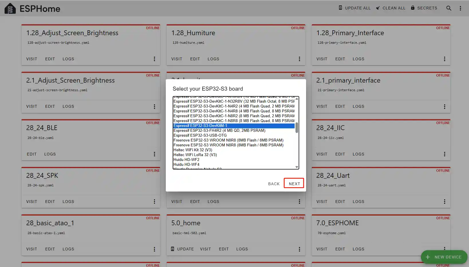 This brings you to the current ESPHome file management interface.
