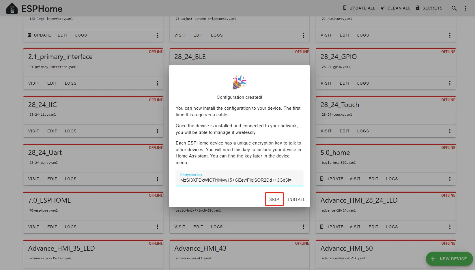 Here, click "SKIP".