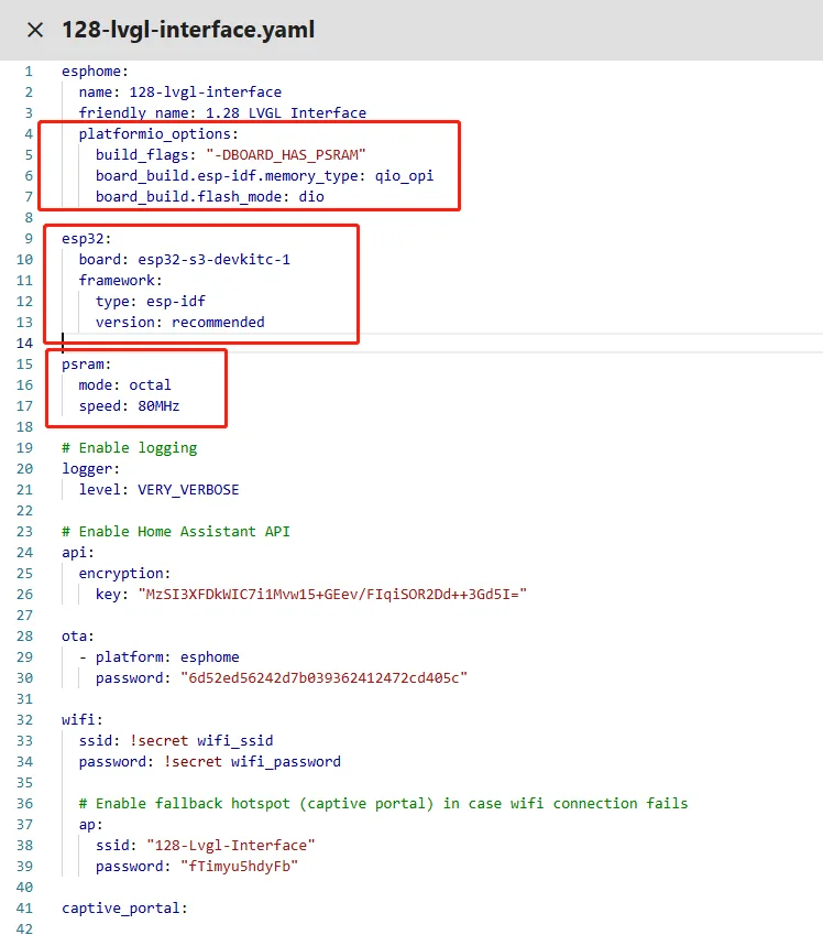 Next, you can replace the relevant content in esphome and ESP32 as needed.And add the item "PSRAM".