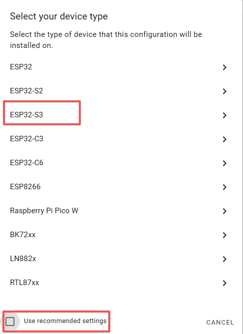Select the main chip of the CrowPanel 2.1inch-HMI ESP32 Rotary Display, ESP32-S3.